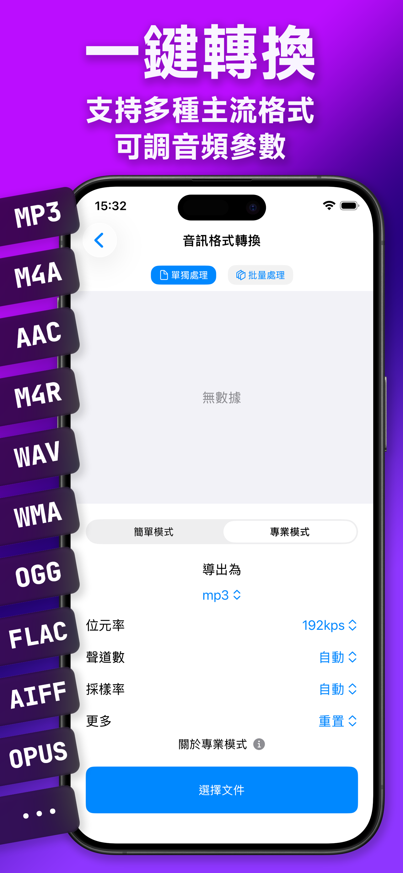- 音訊轉格式:自由切換格式,支援調節位元率、採樣率及聲道。