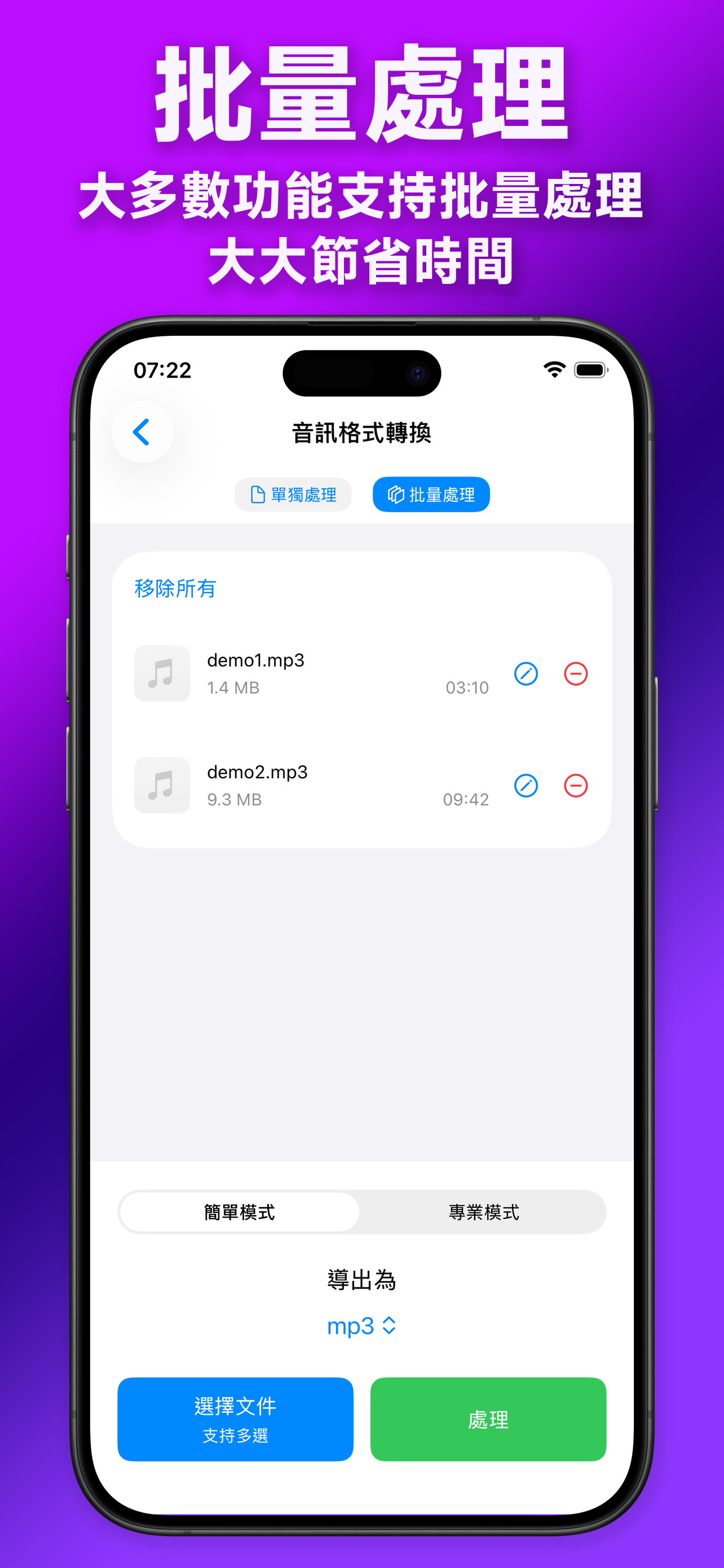 大部分操作支援批次處理,大幅提升您的工作效率!