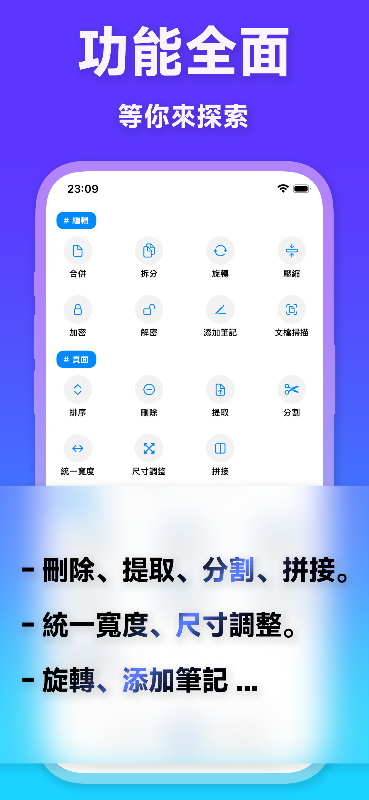 - 合併、拆分、旋轉、壓縮:輕鬆整理和優化您的文件。